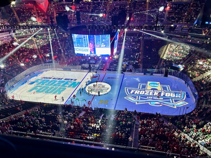 The Frozen Four has finally arrived in Las Vegas. With Denver, Michigan, North Dakota, and Wisconsin playing for the Championship, this should be one of the best Frozen Fours in recent history and the location and venue will make for a unique and special event.